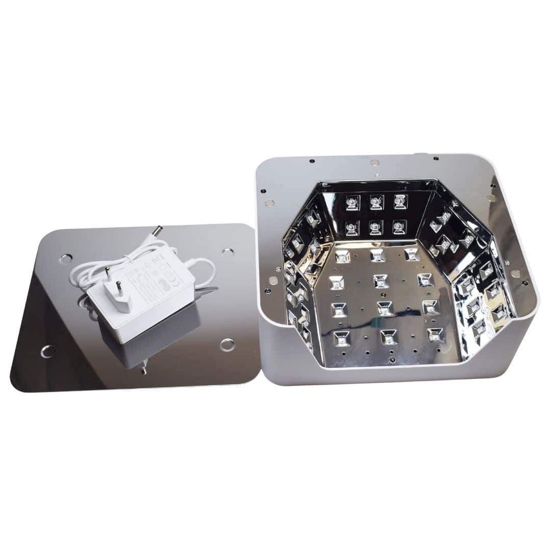 Dit hybride systeem zorgt ervoor dat je als nagelstyliste niet hoeft te wisselen tussen verschillende lampen voor verschillende producten. Dit bespaart niet alleen geld en ruimte, maar stroomlijnt ook je werkproces, waardoor je efficiënter kunt werken en meer klanten per dag kunt helpen. De lamp is ontworpen met strategisch geplaatste LED-lampjes, die ervoor zorgen dat er geen ‘dode zones’ zijn. Dit betekent dat elke millimeter van de nagelplaat, van de pink tot de duim, gelijkmatig wordt blootgesteld aan het licht, wat de kans op onvoldoende uitharding en daarmee lifting of chippen van de nagels minimaliseert.